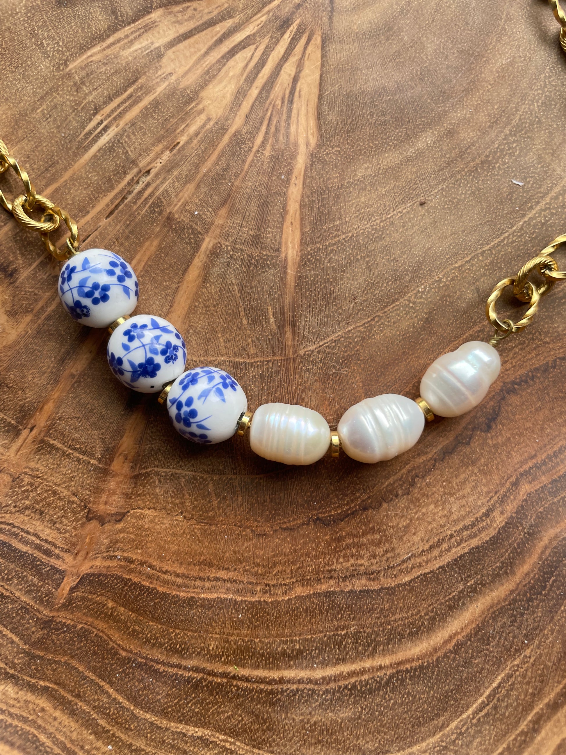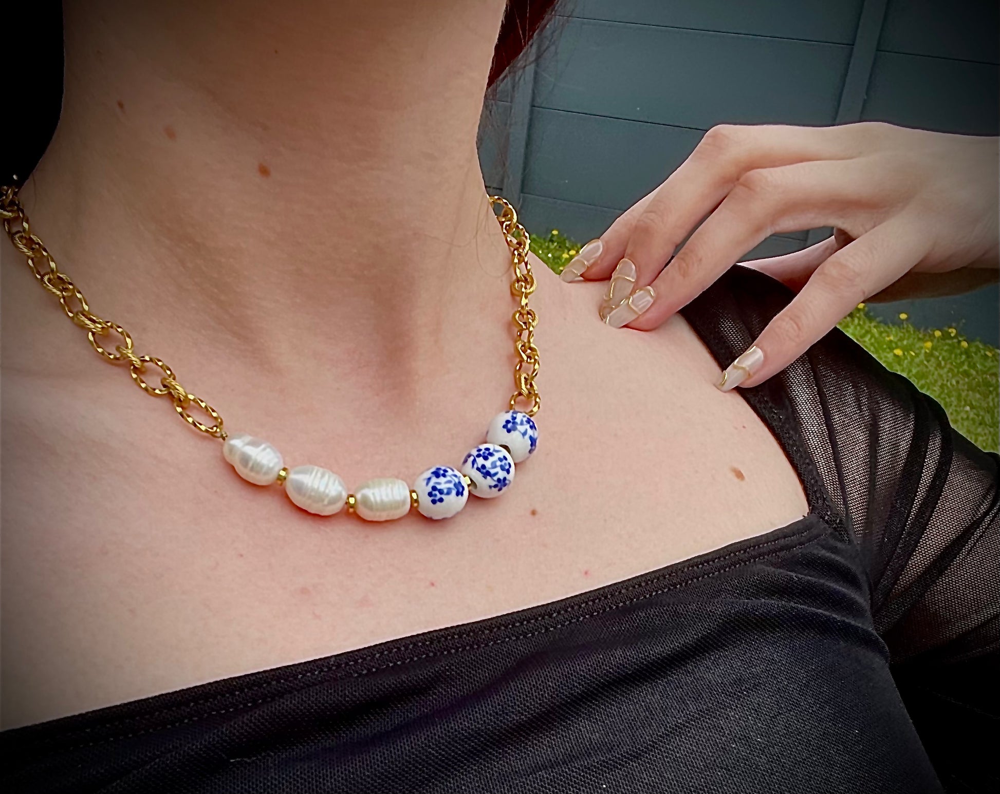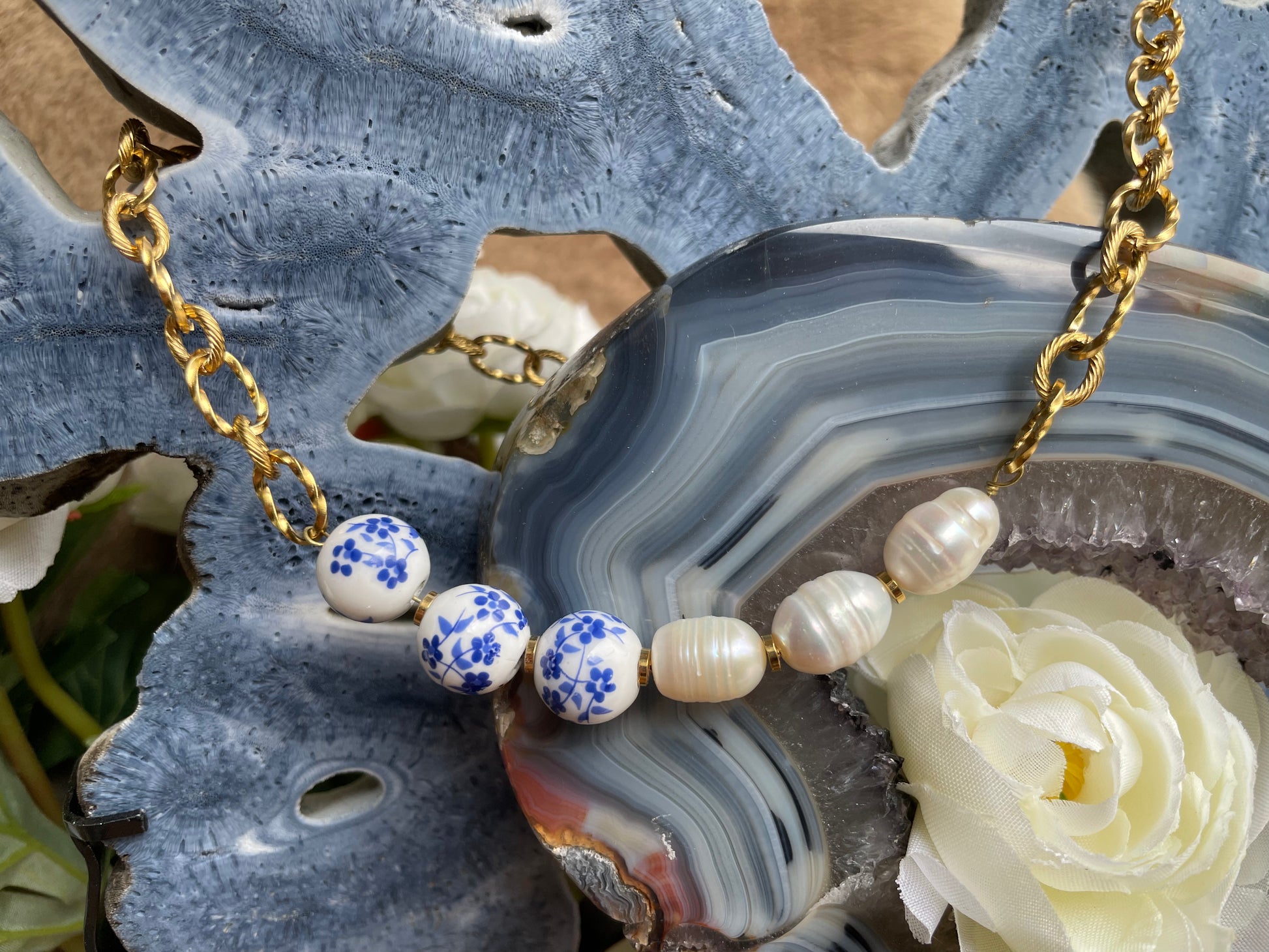 Voyage, élégance, porcelaine... Laissez-vous embarquer par ce collier, à la fois minimaliste et maximaliste. Un modèle qui peut exprimer beaucoup de choses différentes, aux associations visuelles multiples, et pourtant si simple. Moi, j'y vois la Grèce, le soleil, la plage... Et vous ?