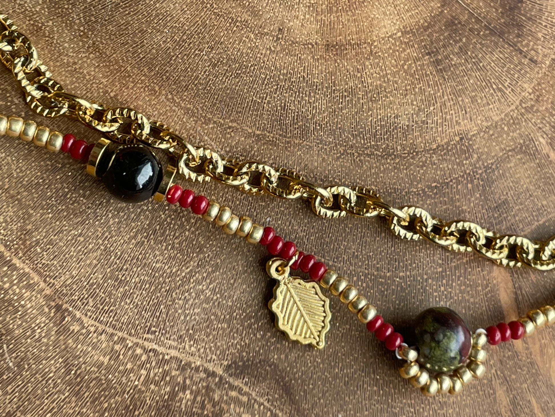 - Pierres naturelles : grenat rouge facetté grade A, jaspe sang dragon grade A, grenat rouge rond grade AA